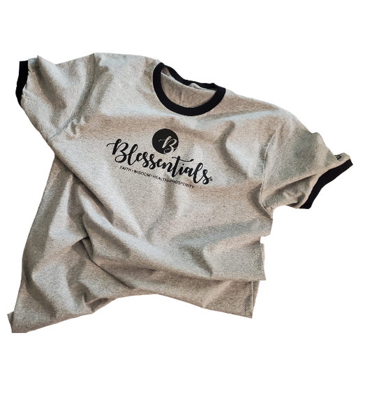 BLESSENTIALS® Classic Ringer T-Shirt (Light Heather Grey/Black with Black Trim)
