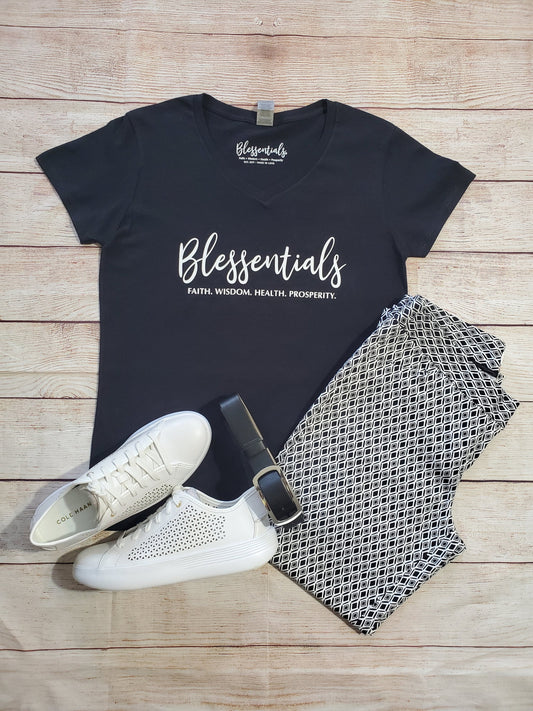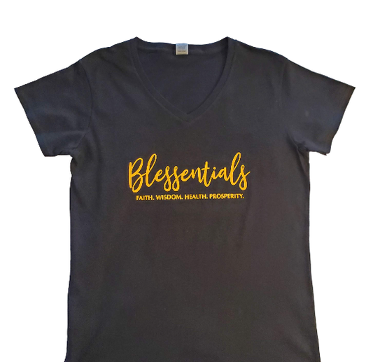 BLESSENTIALS® Women's V-Neck T-Shirt (Black/Gold)
