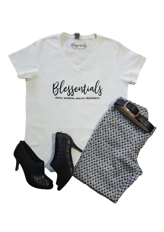 BLESSENTIALS® Women's V-Neck T-Shirt (White/Black)